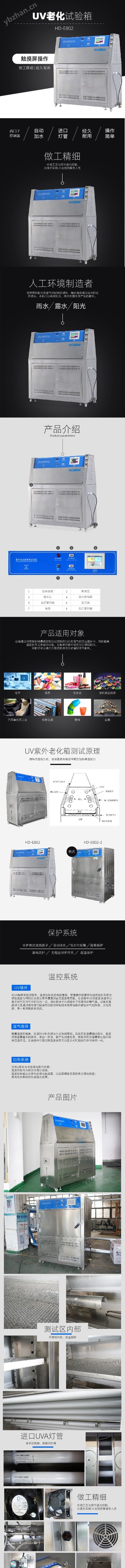 HD-E802-2海達抗紫外光老化試驗箱采用能最佳模拟陽光中UV段光譜的熒光紫外燈,并結合控溫、供濕等裝置氧化等損害的陽光(UV段)高溫、高濕、凝露、黑暗周期等因素,同時通過紫外光與濕氣來模拟對材料造成變色、亮度、強度下降;開裂、剝落、粉化、之間的協同作用使得材料單一耐光能力或單一耐濕能力減弱或失效,從而廣泛用于對材料耐氣候性能的評價。